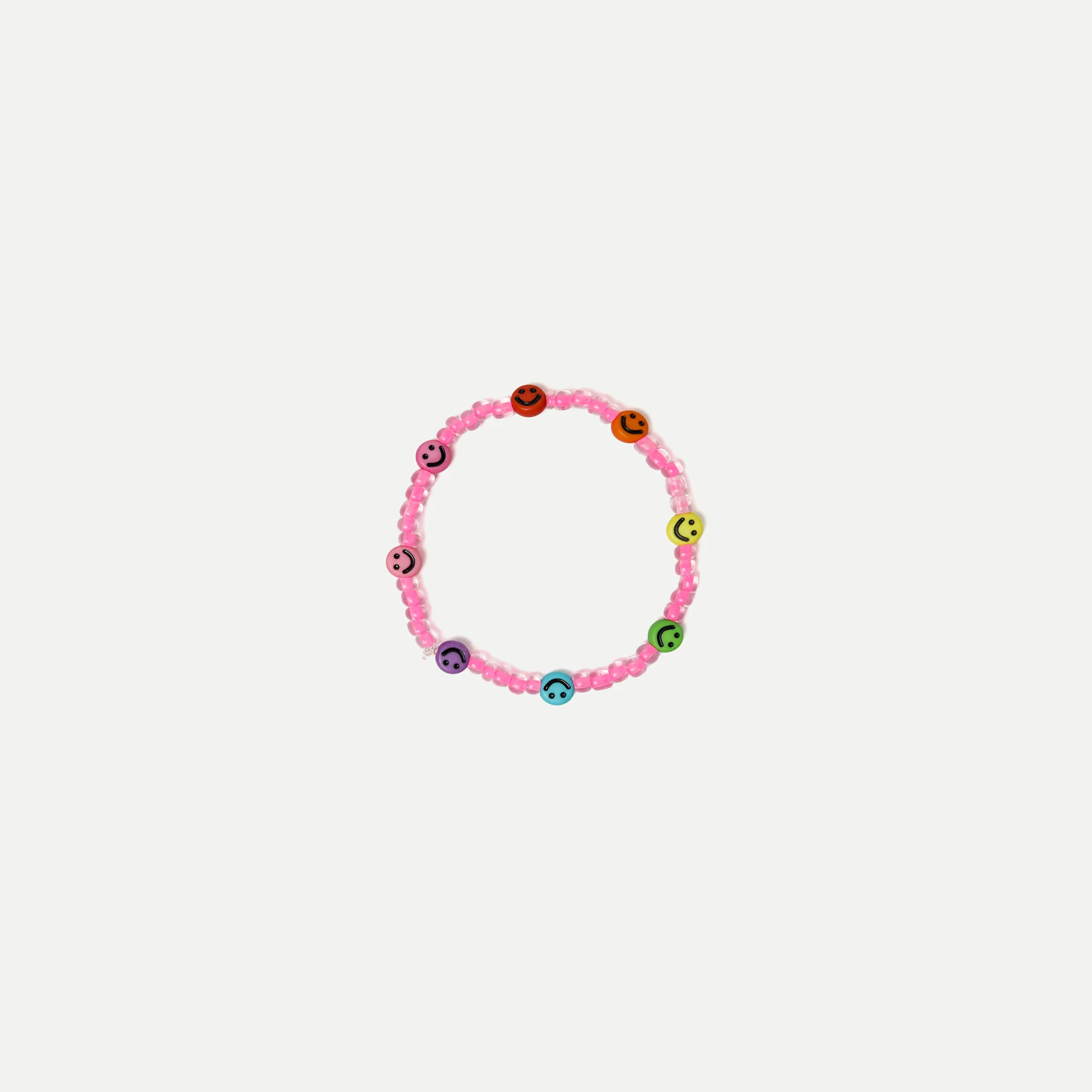 The AeroSport Bracelet is custom-designed by Aero. These beaded elastic bracelets feature cheerful smiley faces and a mix of vibrant, hand-selected beads.