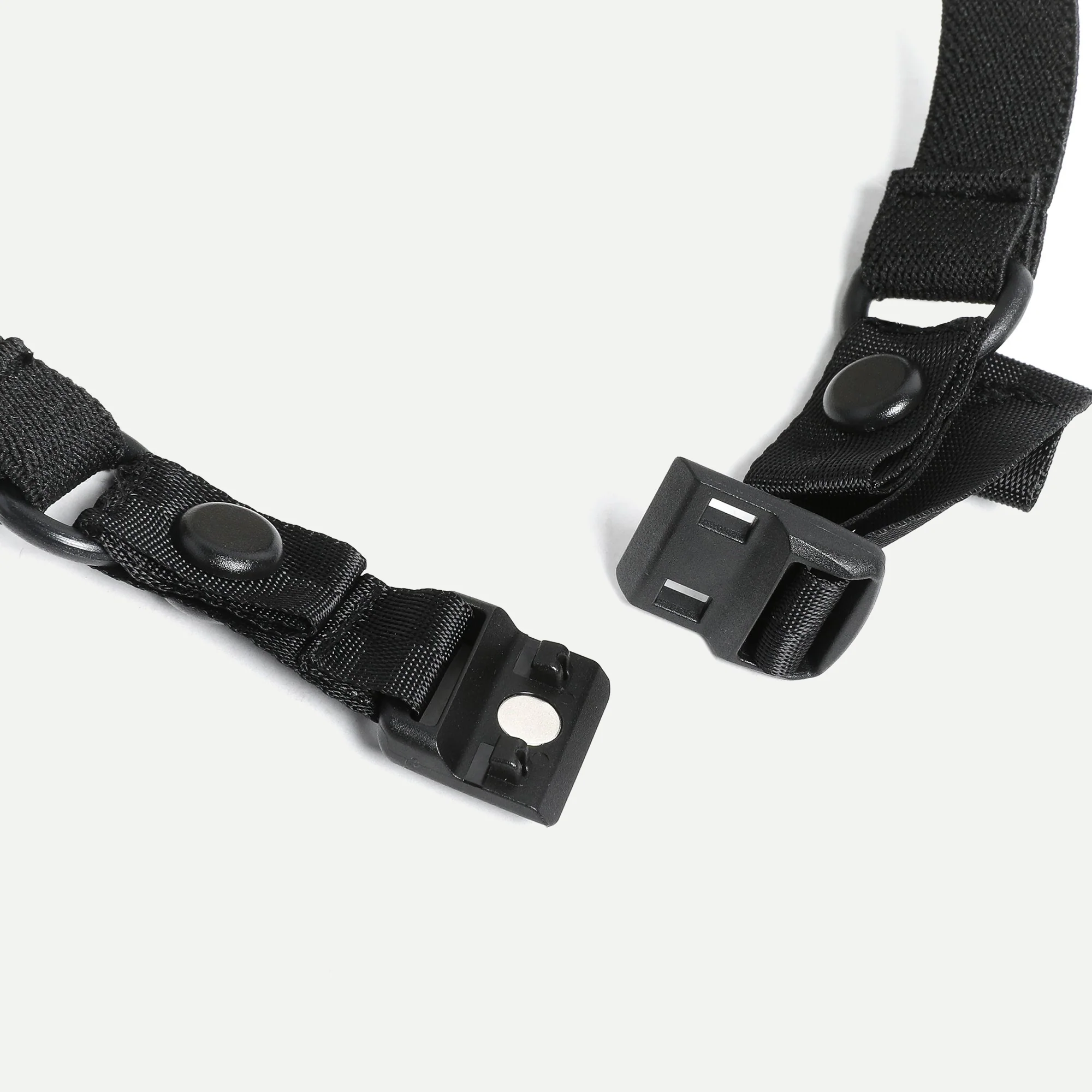 This nylon strap can be used in conjunction with any ear loop style mask. The straps alleviate the tension on the back of the ears and includes a magnetic buckle for easy release. Strap attaches with snaps and can also be tightened quickly.